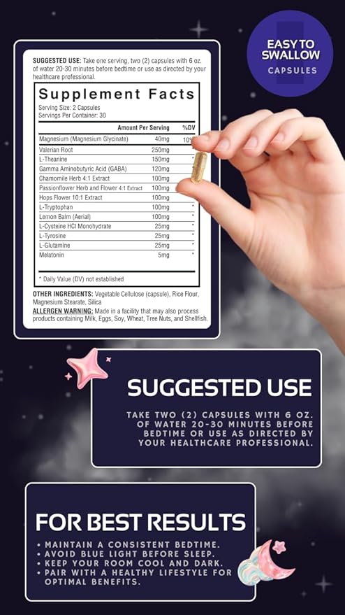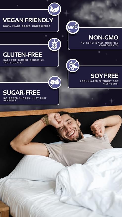- Special Ingredients : L-Theanine, Melatonin, Valerian, Magnesium, Chamomile