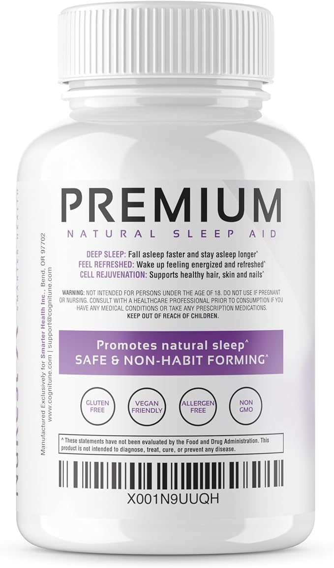 CogniTune Natural Sleep Supplement - Non Habit Forming Sleeping Pills, Non Drowsy Herbal Sleep Aid Formula w/Melatonin, Valerian Root, Lemon Balm, Chamomile, GABA, L-Theanine, Magnesium, Amino Acids