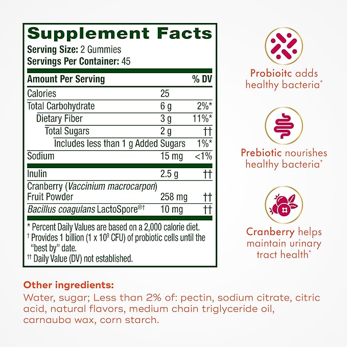 - WITH CRANBERRY FOR FEMININE HEALTH*: Align Probiotic Women’s Dualbiotic Gummies contain cranberry to help support a healthy urinary tract.*