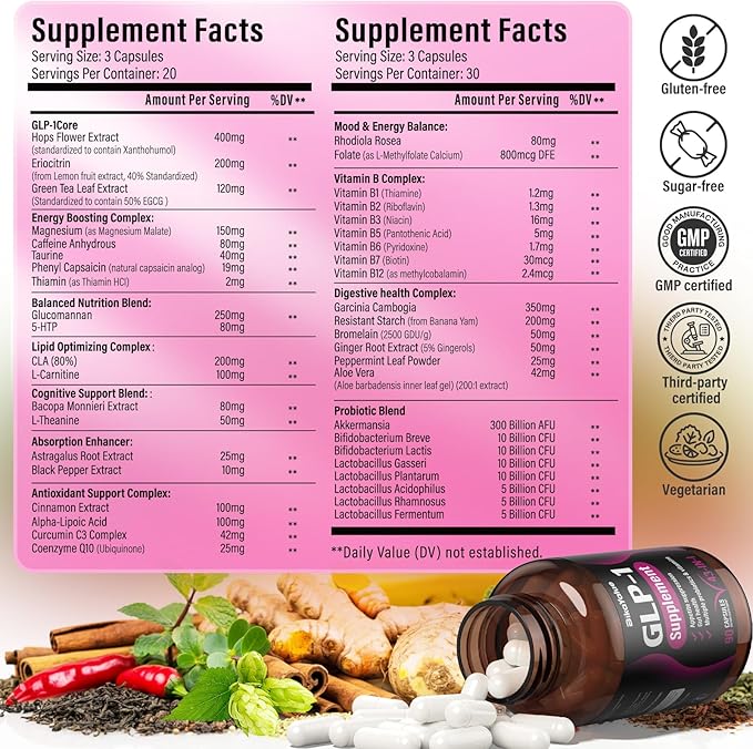 GLP-1 Alternative Supplement, Natural Extracts with Hops, Green Tea Extract, Garcinia Cambogia, Multivitamins, Probiotics, for Gut, GLP-1 Activate & Overall Health - 040