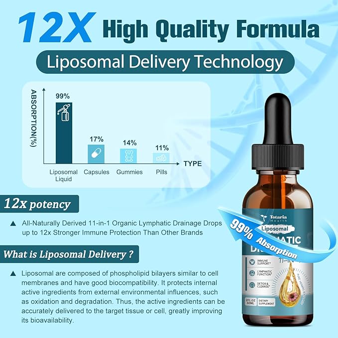 - 100% Pure and Organic: Totaria guarantees that our lymph drops are natural and organic. It is the most natural ecological health guardian. Supports lymphatic system, immunity, cleansing, fluid balance and anti-oxidation. You can use it with your lymphatic drainage massager to achieve protection from the inside out.