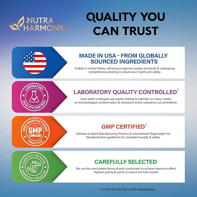 - Trustworthy Service — We are committed to providing exceptional customer service and transparency with NUTRAHARMONY’s carefully selected Alpha Lipoic Acid capsules! With our ALA capsules, you can trust that you're receiving a premium-quality supplement backed by scientific research and dedicated customer support!