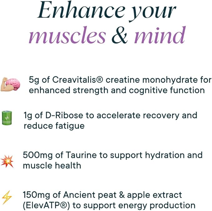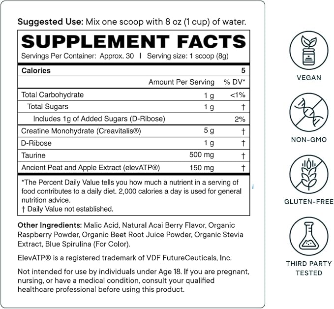 - Nature’s Energy-Booster: ElevATP is nature’s energy booster—featuring a blend of ancient peat and proprietary apple extract, it has been found in clinical studies to support increased mitochondrial ATP levels, the fuel your cells need. This helps Muscle Memory support ATP production, delivering unparalleled energy. By supporting energy production and maintaining balanced ROS and lactate levels, ElevATP promotes overall cellular efficiency and vitality. Perfect for those looking to enhance performance and energy naturally.