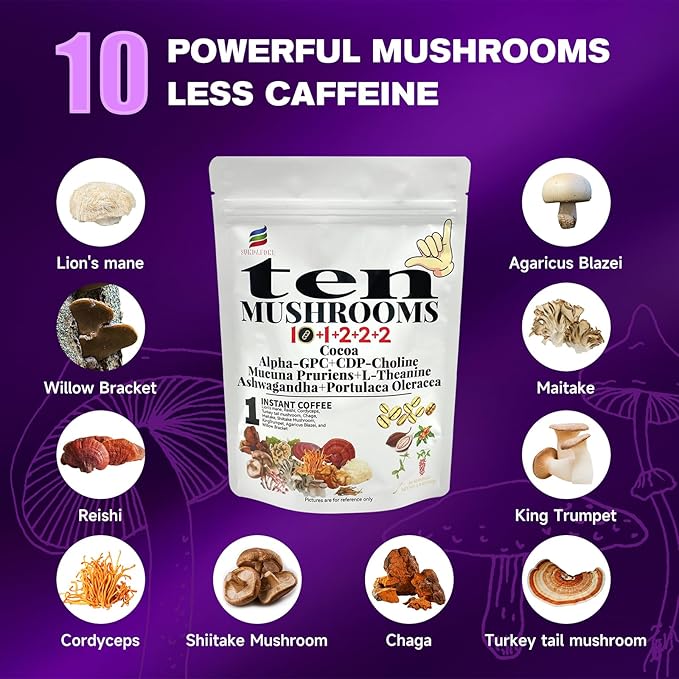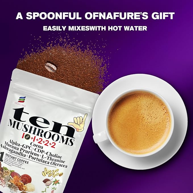 - 【17-in-1 Mushroom Coffee Superblend】 Kickstart your day with this powerful blend of 10 premium mushrooms, including Lion’s Mane, Reishi, and Chaga, combined with natural brain-boosting ingredients . Perfect for improving focus, clarity, and overall wellness.