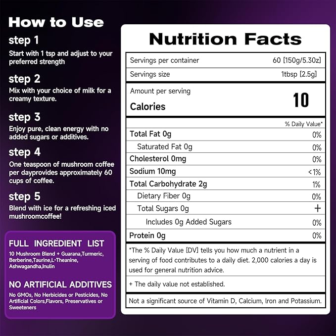 - 【Convenient Instant Coffee】 Ideal for busy mornings, this instant mushroom coffee dissolves easily, providing a quick and convenient way to enjoy all the benefits of mushrooms—no brewing required.