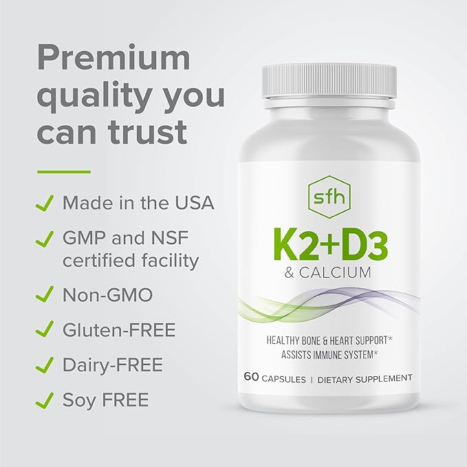 SFH K2+D3 & Calcium: The Ultimate 3-in-1 Formula for Bone, Immune, and Cardiovascular Health – 60 Capsules