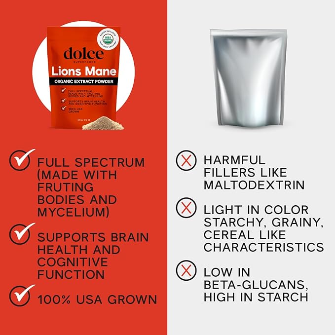 - PURE & ORGANIC – Our Lion’s Mane Mushroom Extract is USDA certified organic, offering a clean, high-quality nootropic for brain support. Free from fillers and additives, this organic lions mane powder is a natural way to boost brain power.