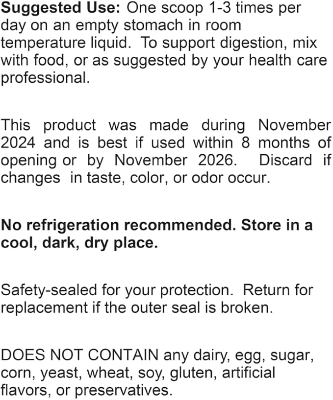 - Special Ingredients : Taurine, L-Glutamine, Collagen, L-Lysine, Glycine