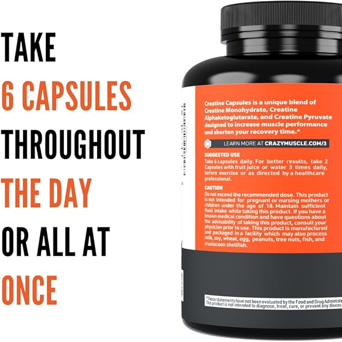 - 3-IN-1 CREATINE CAPSULES: Elevate your workout with Crazy Muscle's Three-atine, a unique creatine blend including creatine monohydrate. Designed to support the fitness journey of both men and women