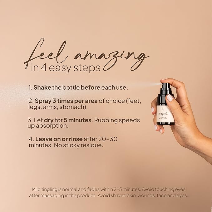 - FEEL THE BENEFITS IN MINUTES, NOT HOURS - Organic magnesium chloride spray that quickly penetrates the skin, easing muscle tension and promoting relaxation. Lightweight and residue-free, it absorbs instantly for maximum effectiveness.