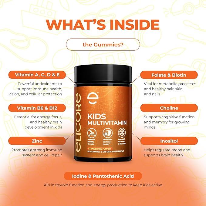 - ALL-INCLUSIVE WELLNESS FORMULA: Support your child's overall health and developmental needs with ELICORE's kids multivitamin. This comprehensive formula promotes growth, immunity, and focus, making it a superior choice among kids’ vitamins.