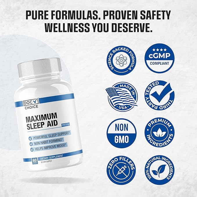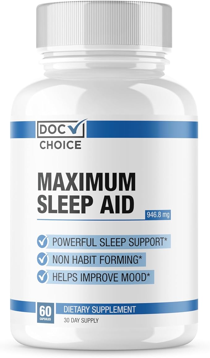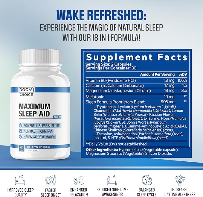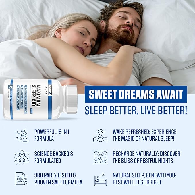 Maximum Sleep Aid | Highly Dosed Non-Habit Forming Sleep Aid for Adults | Mood, Sleep, Restfulness Support | 18 Research Backed Ingredients | Melatonin, Magnesium, GABA, Ashwagandha & More - 60 Caps
