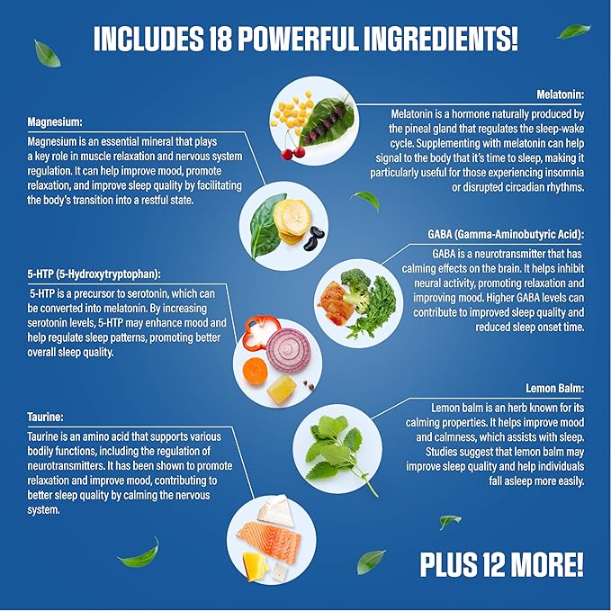 - Fall Asleep Faster with Ease - Experience quicker, smoother transitions into sleep with a calming blend of melatonin, L-theanine, and soothing botanicals. This thoughtfully crafted formula helps reduce the time it takes to fall asleep, letting you drift off without the frustration of tossing, turning, or lying awake. Ideal for those dealing with occasional sleeplessness or irregular sleep schedules.