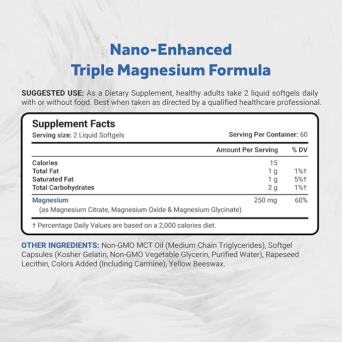 - Proprietory Nano Infused for Better Absorption: Enhanced absorption and reduced GI discomfort with our powerful blend of 250mg magnesium, delivered in three highly bioavailable forms: magnesium glycinate, magnesium citrate, and magnesium oxide. Nano-treated for better absorption and gentle on the stomach.*