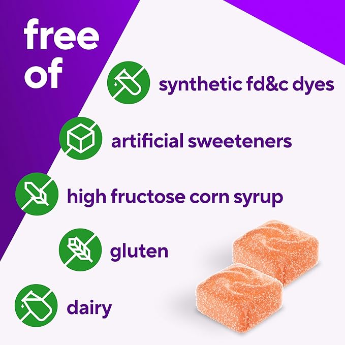 - High-quality, lab-tested gummy vitamins; no high-fructose corn syrup, no artifi cial sweeteners, no gluten, no dairy, and no synthetic FD&C dyes