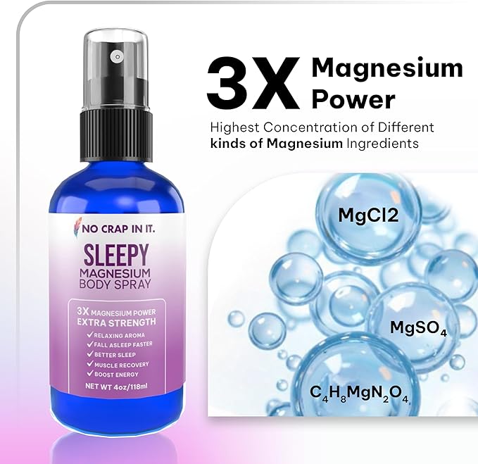 Sleepy Magnesium Spray Triple Magnesium Power: All Natural Magnesium Chloride, Glycinate, Sulfate - 4oz