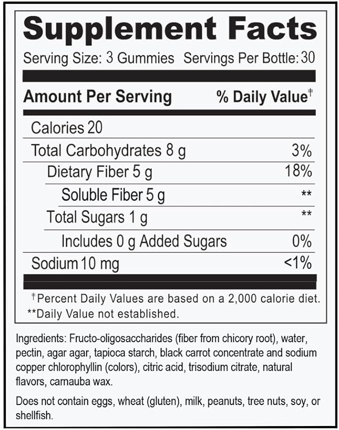 - Berry Flavored Gummies: Our product is a flavored prebiotic gummy fiber supplement, making it a convenient and enjoyable way to receive your daily dosage of fiber supplements.