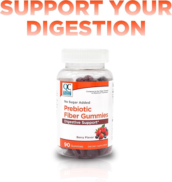 Quality Choice Prebiotic Fiber Gummy Supplement for Digestive Health - Berry Flavored Fiber Gummies, 90 Count Bottle with 30 Days Supply, for Daily Recommended Fiber
