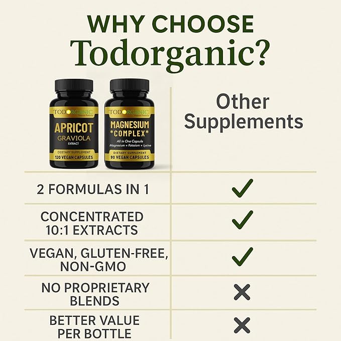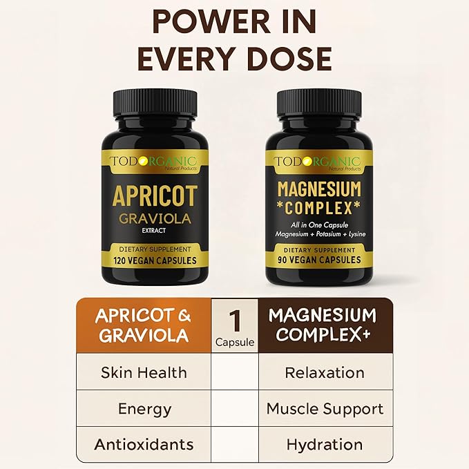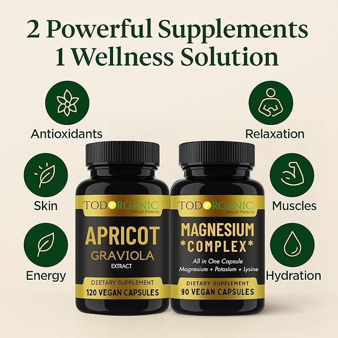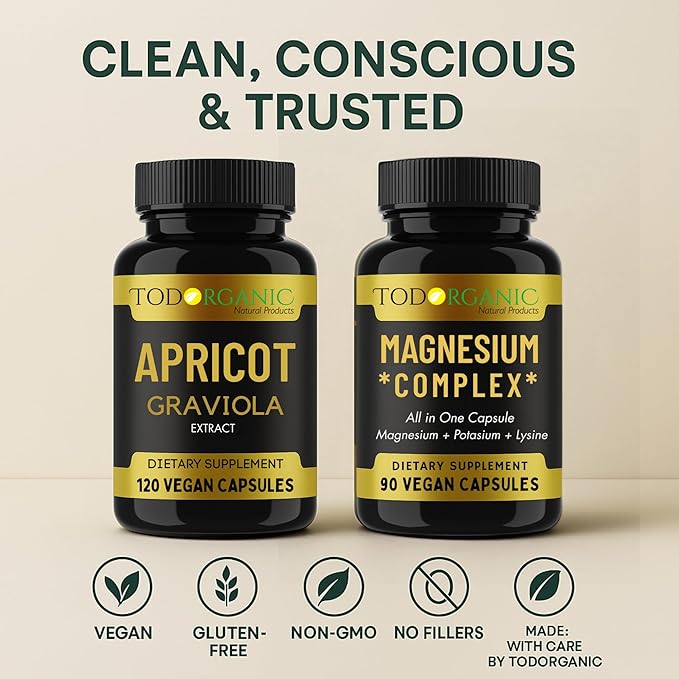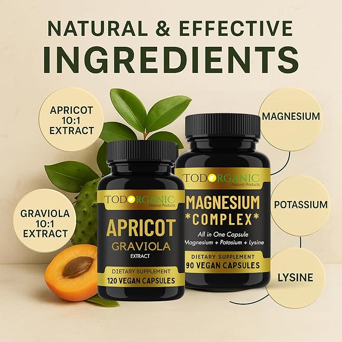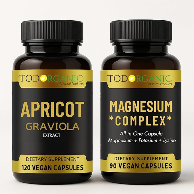 Todorganic 2-Pack: Apricot & Graviola Extract + Magnesium, Potassium & Lysine – Vegan Supplement Combo for Relaxation, Healthy Skin & Mineral Balance – Non-GMO, Gluten-Free – 2 Bottles
