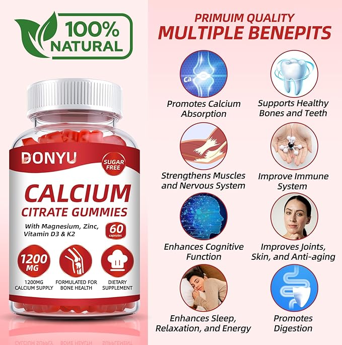 Calcium Citrate 1200mg Gummies with Vitamin D3: with Calcium Magnesium Zinc Vitamin D3 K2 for Bone Muscle Immune - Ultimate Absorption Calcium Supplement for Women & Men, Sugar-Free