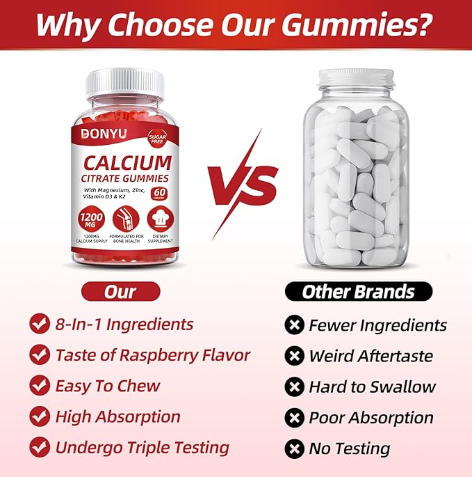 - ๐๐๐ญ๐ฎ๐ซ๐๐ฅ ๐๐๐ฌ๐ฉ๐๐๐ซ๐ซ๐ฒ ๐ ๐ฅ๐๐ฏ๐จ๐ซ & ๐๐ฎ๐ ๐๐ซ ๐ ๐ซ๐๐: These natural raspberry flavored calcium citrate gummies are non-sticky and non-bitter, providing a delicious chewing experience. Compared to hard-to-swallow everyday capsules and powders, these calcium citrate gummies are free of sugar and artificial sweeteners. They are easily absorbed and digested without any burden on the body and are suitable for adults.