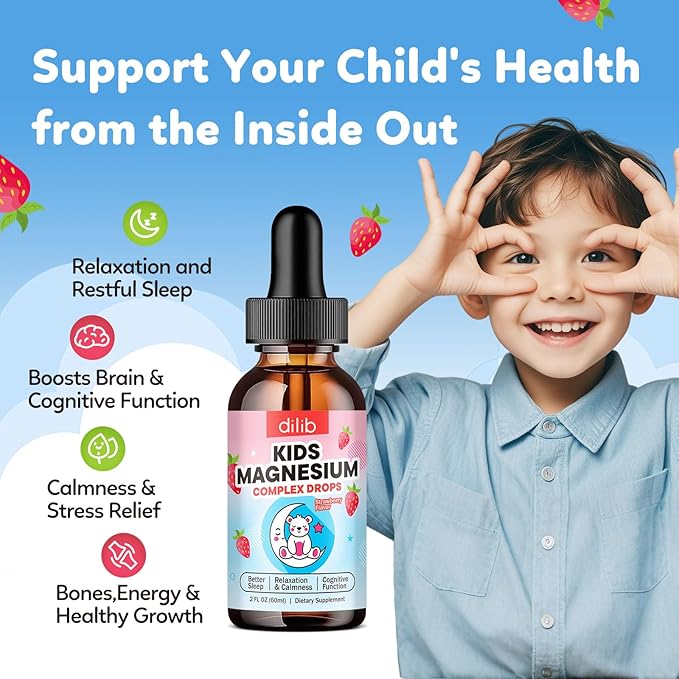 - RELAXATION & RESTFUL SLEEP: dilib kids magnesium glycinate liquid supplement is formulated with Magnesium Glycinate, Magnesium Citrate, L-Theanine, Chamomile, Lemon Balm, Ashwagandha and Passionflower Extract to help promote relaxation, ease anxiety, support a balanced mood and improve sleep quality for kids- so kids wake up refreshed and ready for the day