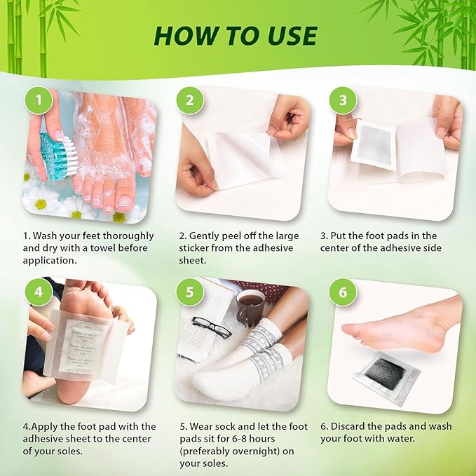 - Relaxation and Wellness Foot Pads: Enhance your self-care routine with our bamboo vinegar foot pads, perfect for post-workout relaxation or creating a spa-like experience at home. Suitable for individuals with demanding schedules, including construction staff, healthcare workers, and teachers, these pads help you feel rested and revitalized for the day.