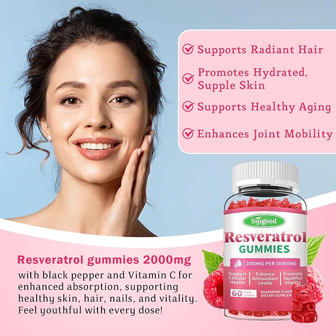 - Resveratrol Gummies for Women: Discover the secret to radiant skin with our delicious antioxidants supplement gummies, specially crafted for women who want to look and feel their best. Perfect for busy women on the go, our resveratrol supplement with advanced formula helps your body absorb and benefit from every dose. Nourish your skin from within and embrace a healthier, more vibrant you.