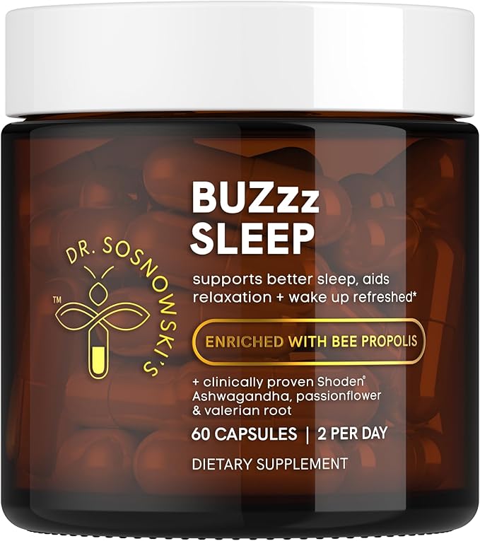 Dr Sosnowski's BUZzz Sleep Support with Bee Propolis Triple Action Sleep Formula for Calmer Nights and Refreshing Mornings, Vegetable Capsules, 60ct