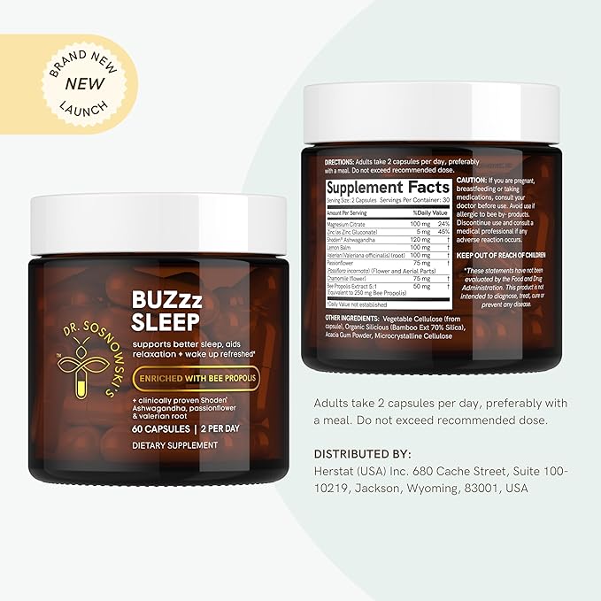 - DAILY DOSE OF HIVE: Dr Sosnowski's BUZzz Sleep is designed to be taken daily. Take twp capsules per day, preferably alongside a meal. The bottle contains 60 capsules, providing a 30-day supply.