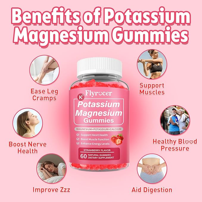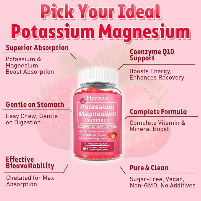 - Delicious Strawberry Flavor & Easy to Take: With a tasty strawberry flavor, these potassium magnesium gummies for women and men offer a convenient and enjoyable alternative to large pills or powders. Simply chew and enjoy