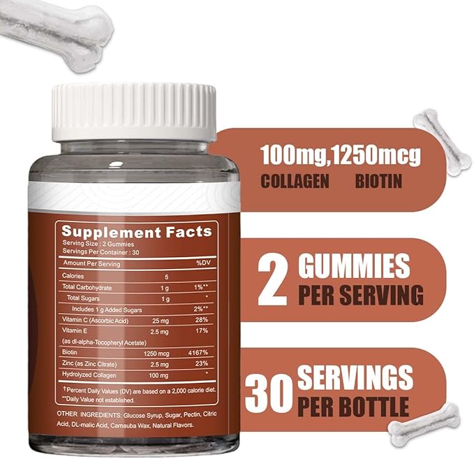 - Supports Hair, Skin & Nails: Nourish your natural beauty with collagen and biotin gummies designed to promote strong hair, glowing skin, and resilient nails.