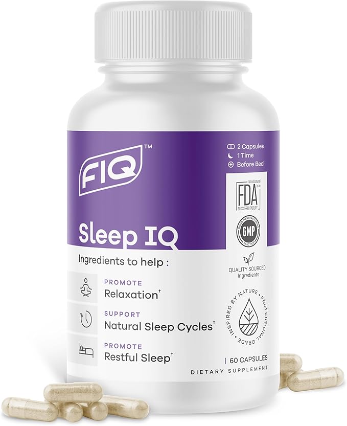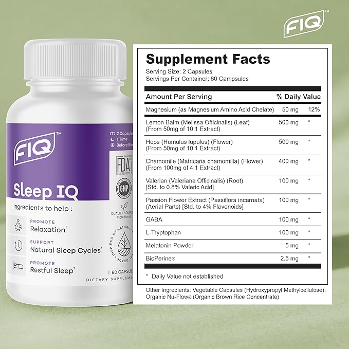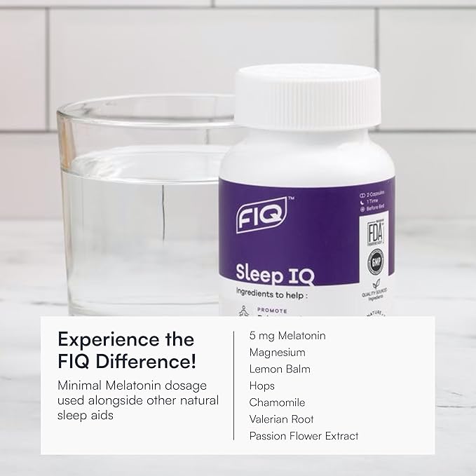 FIQ - Sleep IQ - Sleep Aid - Magnesium Supplement with 5 mg Melatonin, Lemon Balm, & Valerian Root - 60 Capsules