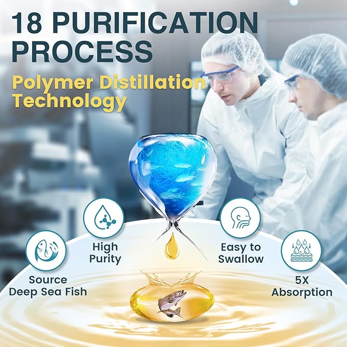 - PURE & HIGH-POTENCY: Your safety is our top priority. Our fish oil undergoes an 18-step purification process to remove harmful contaminants like mercury, far exceeding industry standards, ensuring a pure and effective product. Plus, our advanced softgel technology eliminates fishy aftertaste and burps, making daily intake a pleasant experience.