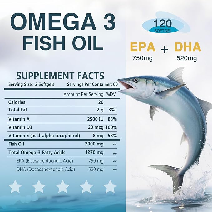 - SUPPORTS HEART, BRAIN & IMMUNE HEALTH: Our fish oil is scientifically designed to promote cardiovascular health, enhance cognitive function, and strengthen the immune system. EPA supports healthy blood flow, while DHA boosts brain performance. Together, combined with essential vitamins, they work synergistically to keep your body and mind in peak condition.