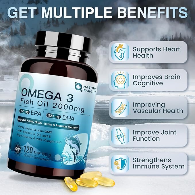 - OPTIMAL ABSORPTION: Nature Target's Fish Oil is packed with Vitamins A, D3 and E to boost immunity, support bone health and provide antioxidant protection. Vitamin D3 enhances the absorption of calcium, and when combined with our specially formulated softgels, the absorption of these nutrients is further enhanced.