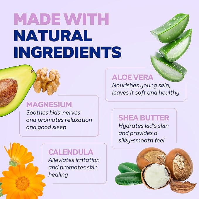 - 🌱 NATURAL INGREDIENTS FOR KIDS: The positive effects on children's health are achieved through the nourishing, soothing, and protective properties of calendula, aloe vera, and shea butter. These natural ingredients work synergistically to provide gentle care in our non toxic body lotion