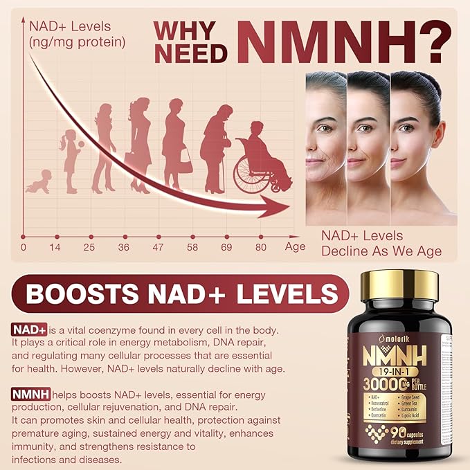 19 in 1 NMNH (Dihydronicotinamide Mononucleotide) 1000mg Per Serving, NAD Supplement to Boost NAD+ Levels NAD Resveratrol Supplement with Quercetin, Berberine for Anti Aging, Energy, 90 Capsules-018