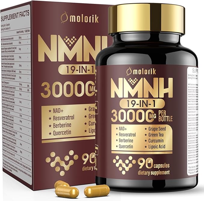 19 in 1 NMNH (Dihydronicotinamide Mononucleotide) 1000mg Per Serving, NAD Supplement to Boost NAD+ Levels NAD Resveratrol Supplement with Quercetin, Berberine for Anti Aging, Energy, 90 Capsules-060
