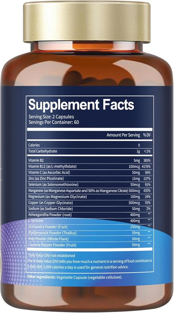 Thyroid Support Supplement Complex Capsules - Iodine Thyroid with L Tyrosine for Mental Clarity
