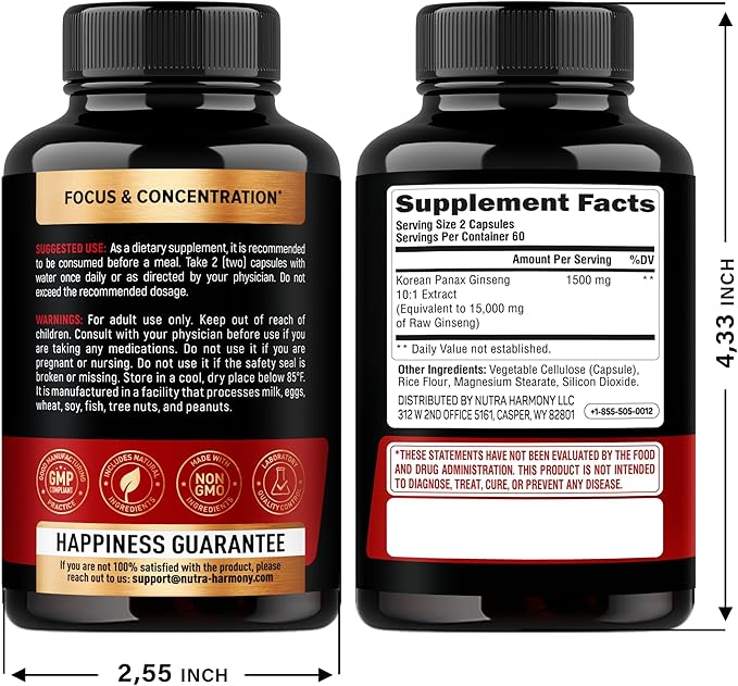 - Trustworthy Service — At NUTRAHARMONY, we are committed to providing only premium-quality supplements, including our carefully crafted Ginseng supplement. Our exceptional customer service ensures that your satisfaction is our top priority, making your wellness journey as seamless and trustworthy as possible.