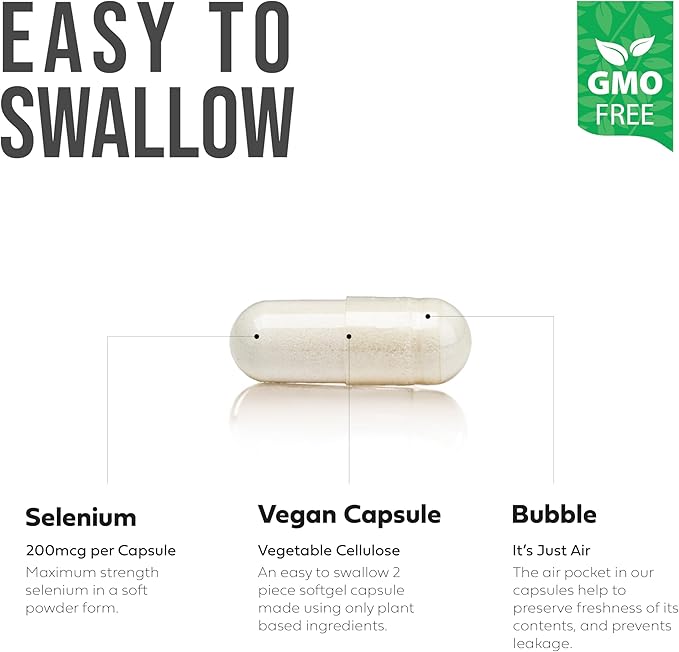 - Immune System & Antioxidant Support: Our selenium capsules are formulated to naturally support your immune system by regulating immune responses, and combating oxidative stress which occurs when there are not enough antixidants for the cells to neutralize them.