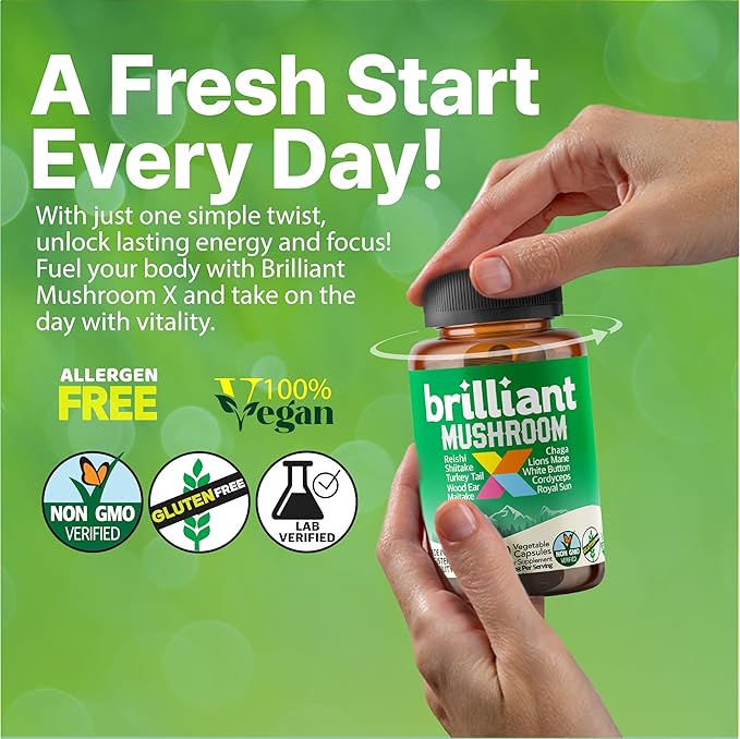 Mushroom X Supplement – 10 Mushroom Complex for Brain, Energy, Immune & Antioxidant Support – Lion’s Mane, Chaga, Reishi & More – Vegan, Non-GMO, Gluten-Free, Made in The USA – 60 Capsules