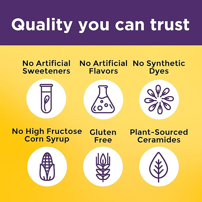 - These gluten free Ceramides, Vitamin C and Biotin gummies have no artificial flavors, no synthetic dyes, no high fructose corn syrup and no artificial sweeteners