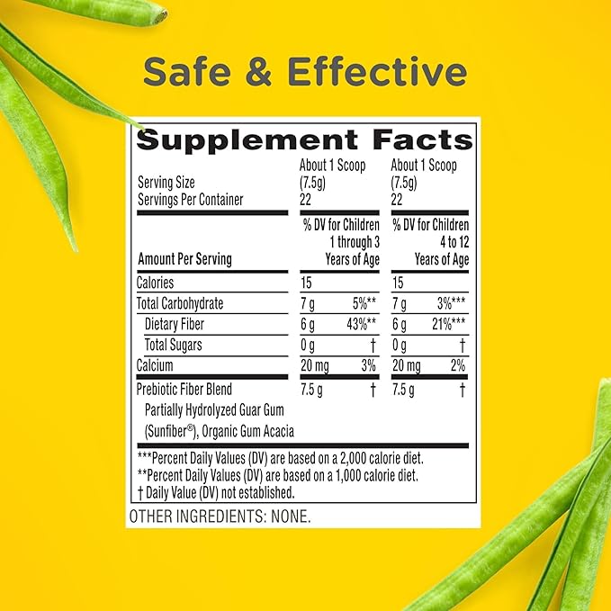 - The flavorless fiber powder for kids mixes easily into hot or cold beverages, cereal, yogurt and other yummy food, making it easy to boost your child's fiber intake. It is formulated with the prebiotic Sunfiber to help reduce occasional constipation*