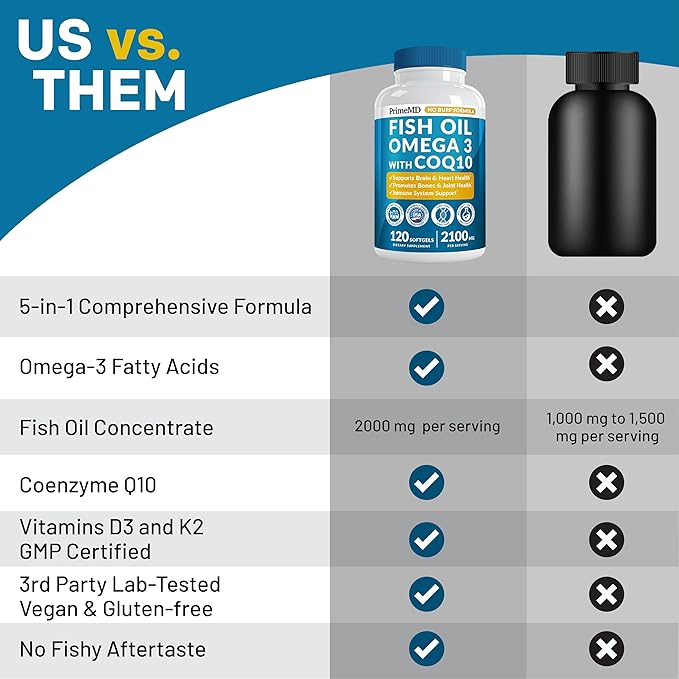 - Become Limitless: Unlike other omega 3 fish oil 2000mg capsules, our omega 3 fish oil epa dha supplement has CoQ10 to support cellular energy. It's the secret to a heart that can always keep up.