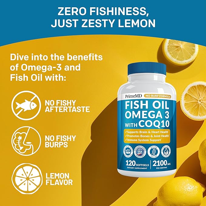 - Fish Oil 2000mg in Zesty Lemon: Enjoy 2000mg of Omega-3 Fish Oil without the fishy finish. Our easy-to-swallow softgels are designed for optimal heart, brain, and immune support, making daily wellness a pleasure.