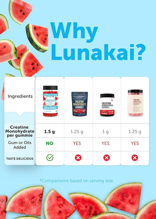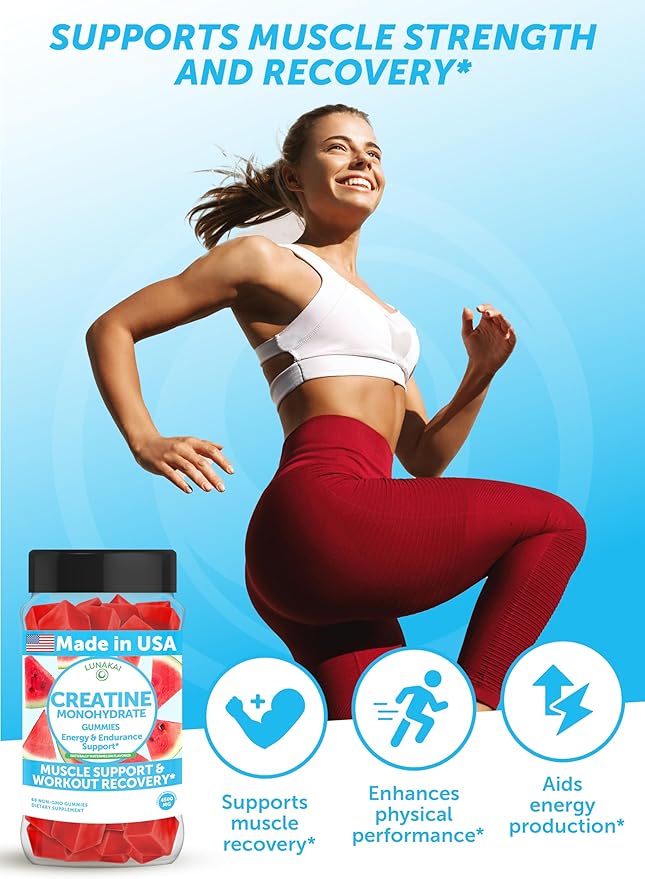 Lunakai USA Made Creatine Monohydrate Gummies for Women & Men – Vegan Creatine Gummies for Muscle & Recovery Support – Pre Workout Supplement, 60ct