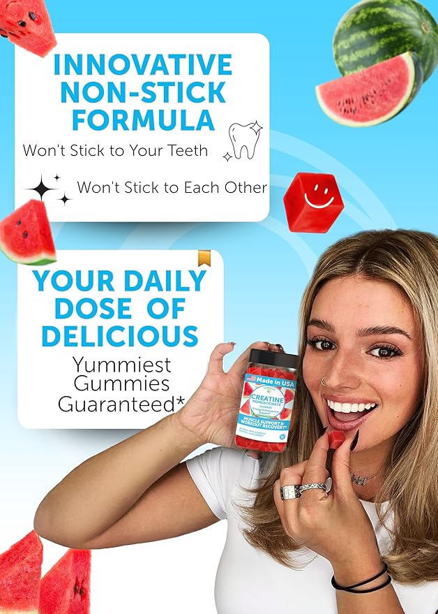 - Delicious Natural Watermelon Flavor – A flavorful upgrade from chalky powders or capsules, these gummy creatine supplements are made with natural flavors and colors.