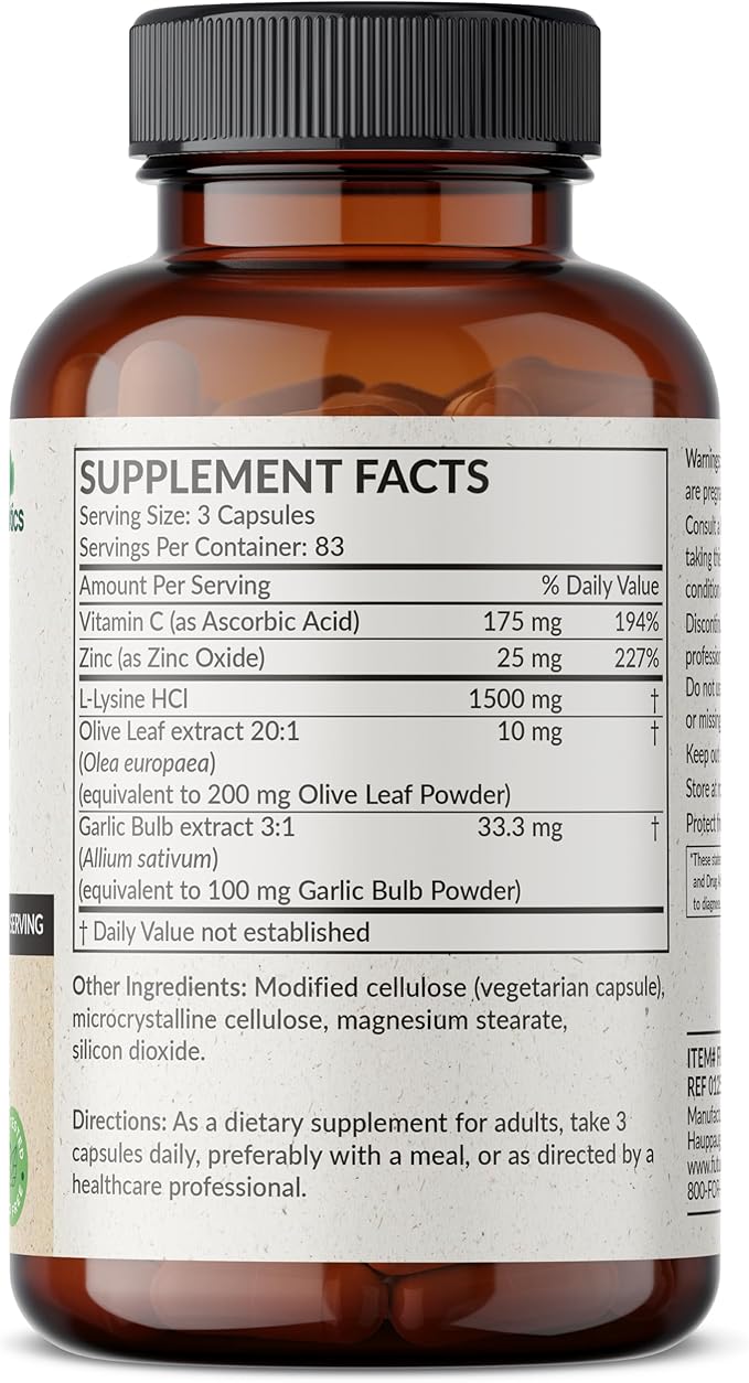 - Plus Olive Leaf, Garlic, Vitamin C & Zinc: L-Lysine combined with key additional immune support ingredients for superior coverage. Providing Olive Leaf and Garlic, which have been used throughout history in various cultures to support immune health.* Additionally includes Vitamin C and Zinc to help replenish the body with essential nutrients to help maintain a healthy immune system.*